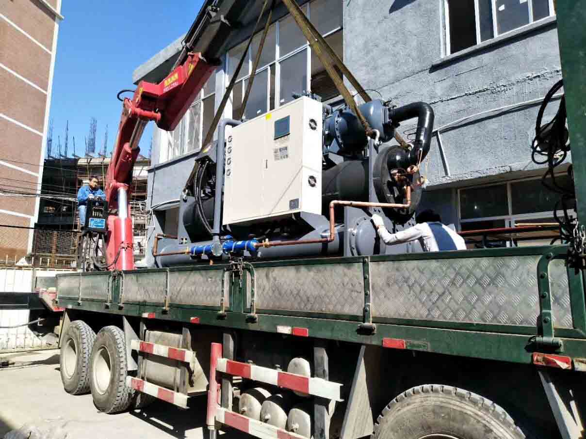 雙壓縮機雙制冷系統(tǒng)中央空調(diào)螺桿機裝載中